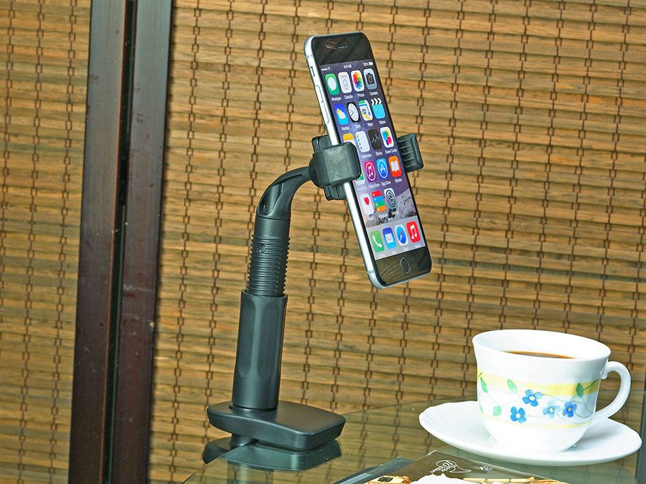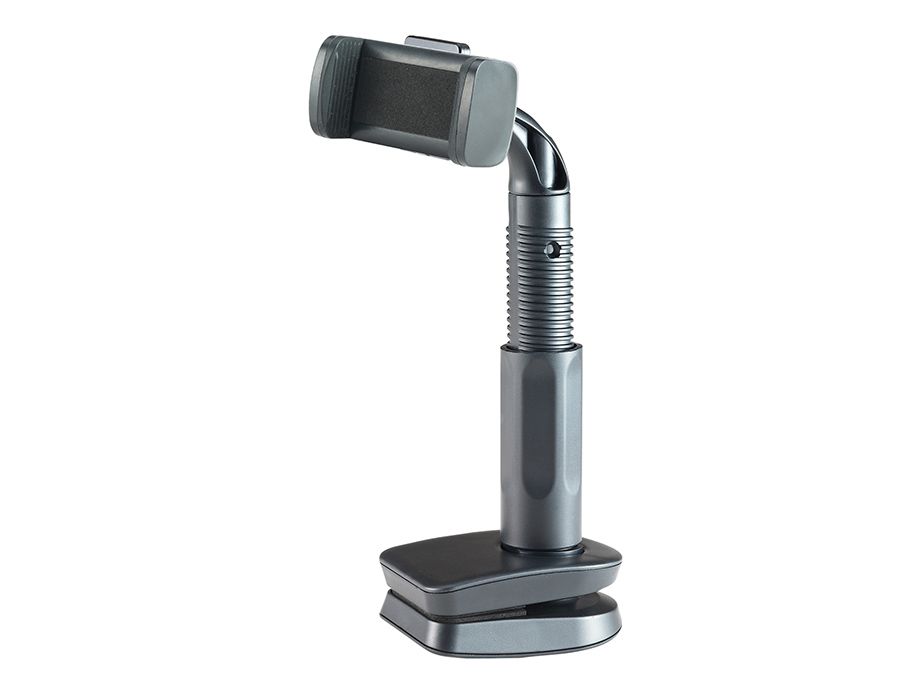 ▪ The spring structure clamp arm of phone holder without buttons, pulling the clamp arm will automatically clamp or release.
