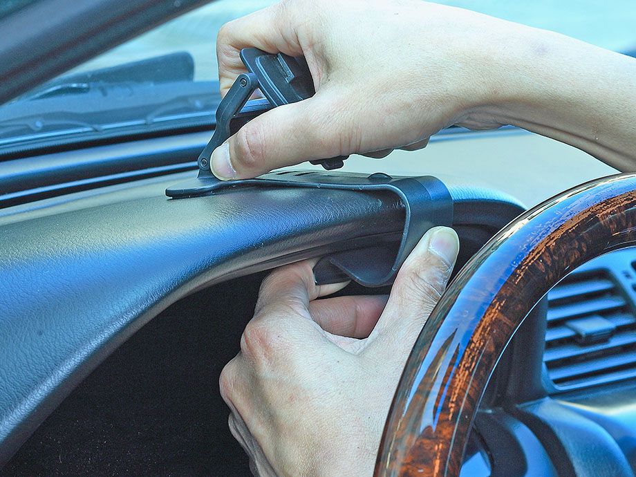▪ Fast install the car mount by easily clipping the base onto the edge of the dashboard.